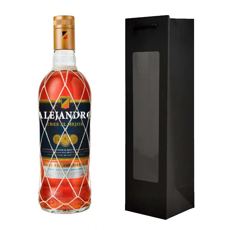 *El diseño del estuche de cartón negro puede variar según disponibilidad, manteniendo siempre el formato adecuado para presentar y transportar la botella como regalo.