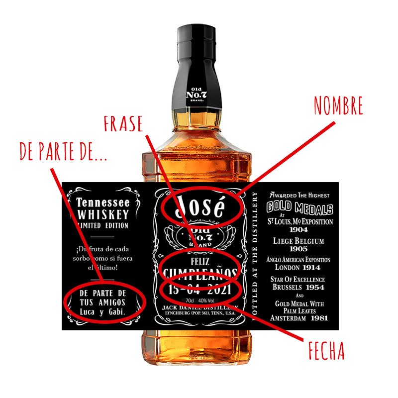 En este pack, personalizamos las botellas con el nombre, la fecha o frase que desees.
