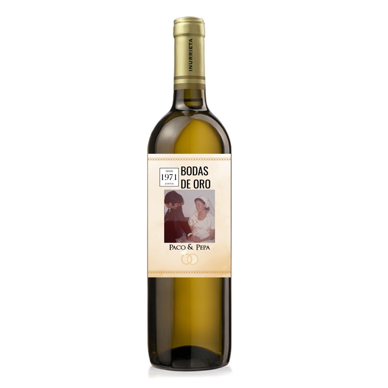 Celebra las Bodas de Oro con una botella de vino personalizada con la foto que más te guste. Regala a tus padres o abuelos un recuerdo inolvidable y sigue compartiendo momentos especiales en familia.