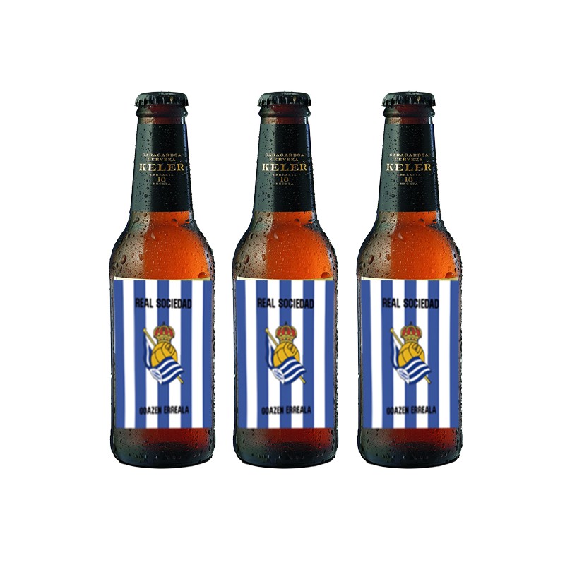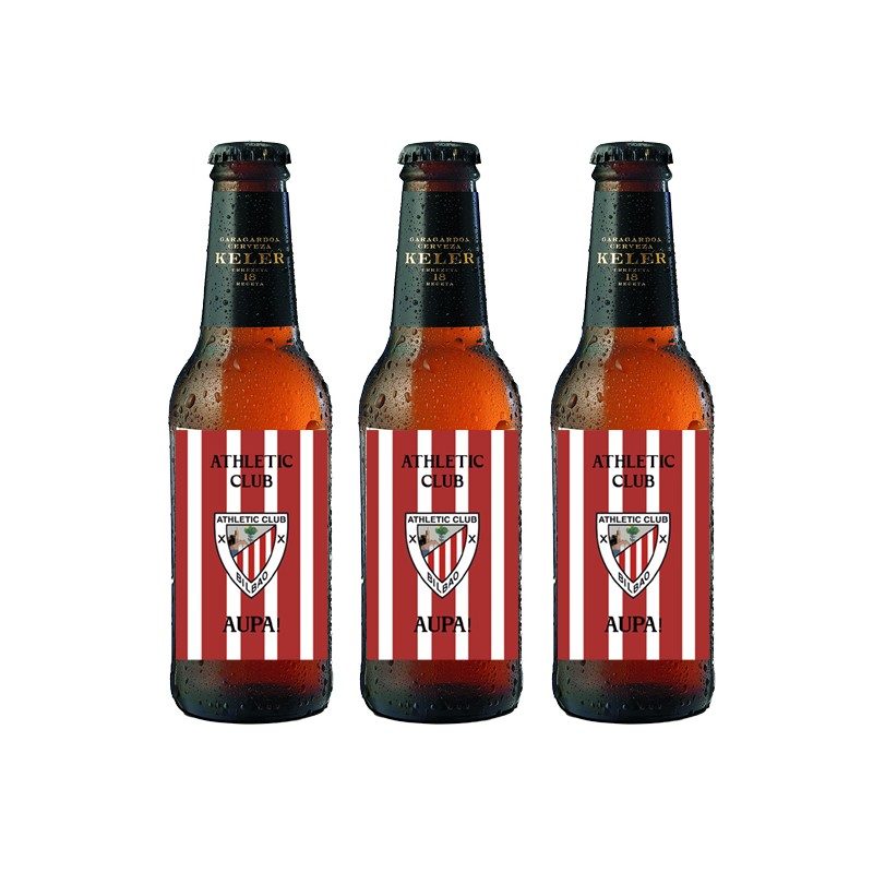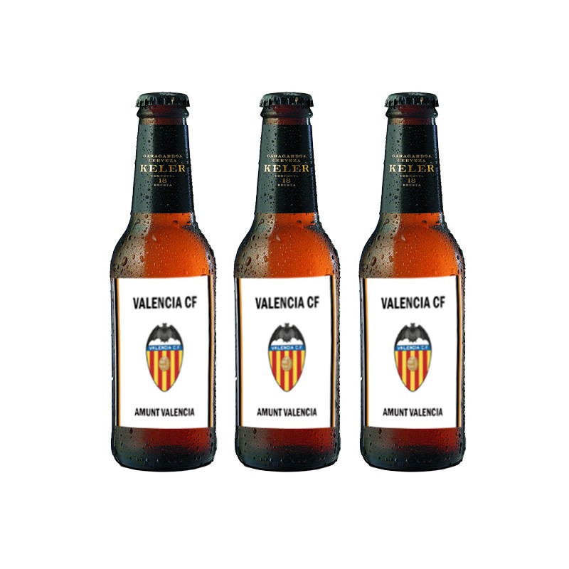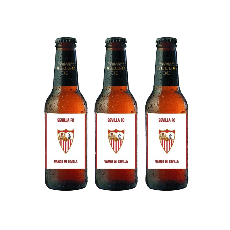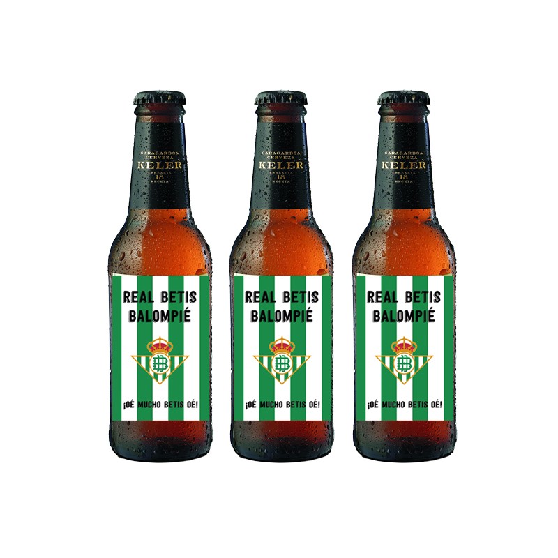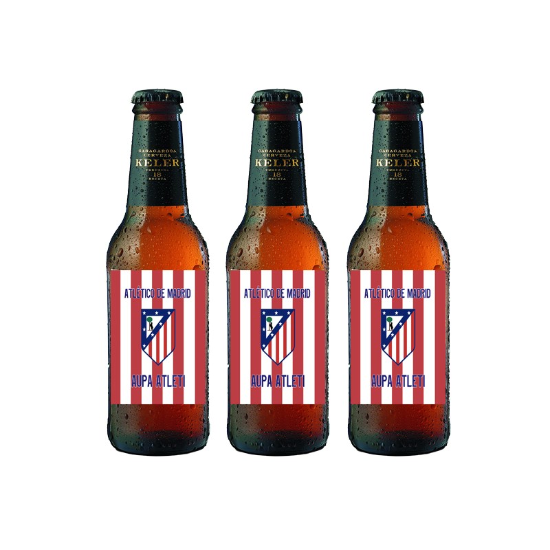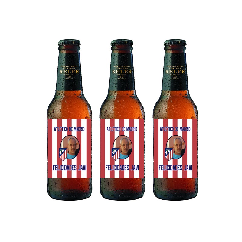- TRES botellines de cerveza personalizadas con tu FOTO o el ESCUDO de TU EQUIPO DE FÚTBOL (25cl)