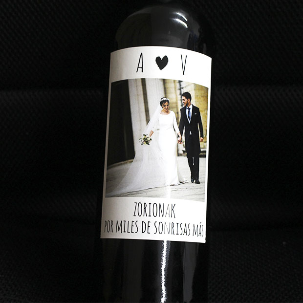 ¿Buscas una botella de vino especial para un evento? Puedes personalizar la botella de vino con una etiqueta del diseño que quieras, totalmente a tu gusto, con foto, con un mensaje divertido, con una fecha especial... ¡a tu medida! Además, también podras seleccionar el tipo de vino que prefieras: vino blanco, vino tinto, sidra o txakoli.