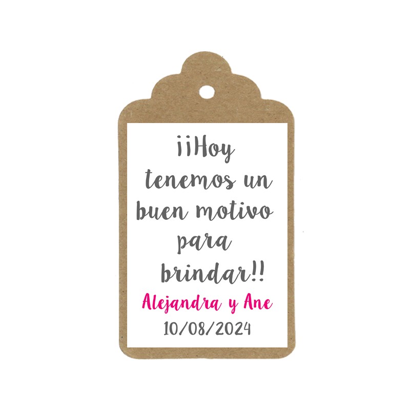 Además, puedes personalizar la etiqueta con la frase que te guste. Si te encanta el diseño pero quieres cambiar la frase, dínoslo en observaciones al realizar el pedido y tendrás una etiqueta única para tu evento.