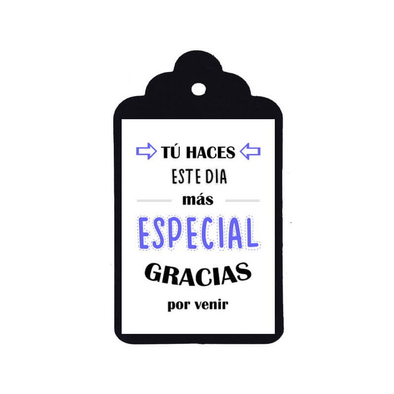 ¡No hay día más especial que el día de tu boda! Agradece a tus invitados su presencia en el día de tu boda con una etiqueta que envía un precioso mensaje: "Tú haces este día más especial. Gracias por venir."