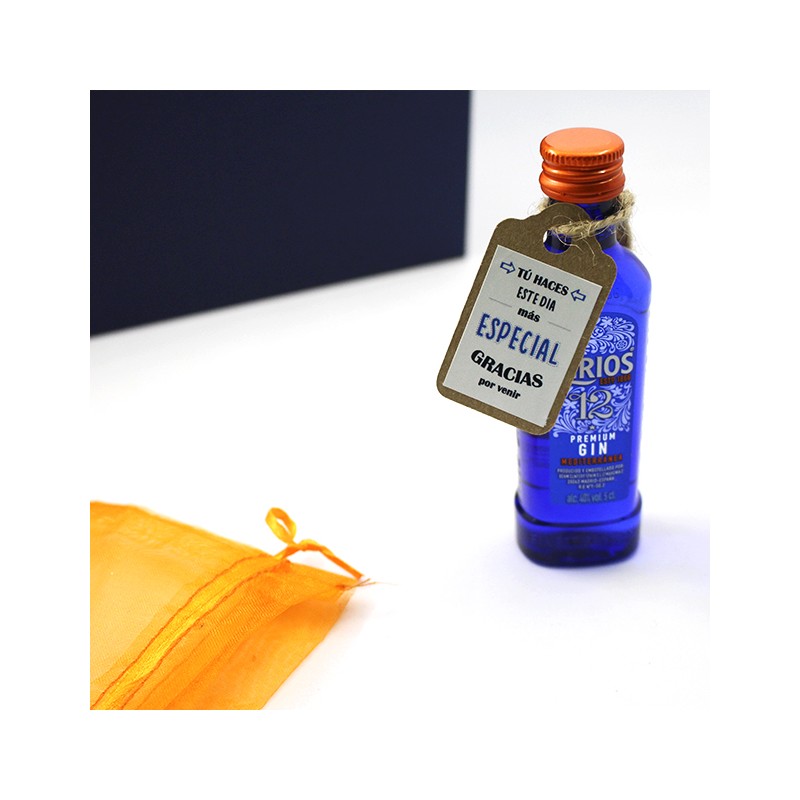 Elige las botellitas de licor en formato miniatura que quieres regalar a tus invitados junto con esta etiqueta personalizada.