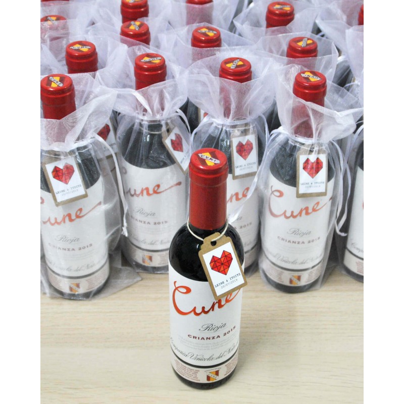 Modernidad en estado puro. Así definiríamos esta nueva etiqueta que tiene como protagonista el dibujo de un corazón geométrico. Es la etiqueta perfecta para una boda desenfadada y fresca, pero donde está presente el amor. Combina genial con nuestra bolsita roja y con cualquiera de nuestra botellitas, en especial, con la de Martini Rojo y la miniatura de ginebra Beefeater.