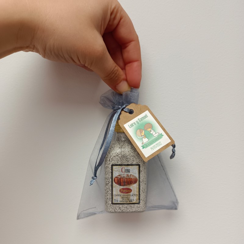 ¿Has visto las mini botellitas de licor tan bonitas que tenemos en Etiqueta Voltereta para la comunión de tus hijos? Ese día tiene que ser especial para ellos y todo tiene que salir perfecto. ¡Hasta el regalo de tus invitados! No te preocupes, lo prepararemos con mucho mimo. Pero ¿Tus hijos son mellizos o gemelos? ¡No hay ningún problema, disponemos de esta simpática etiqueta personalizada para que los dos sean protagonistas ese día.
