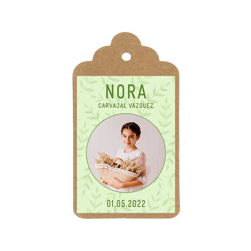Etiqueta de comunión para niña con foto y en papel kraft. ¡Original y moderna!
