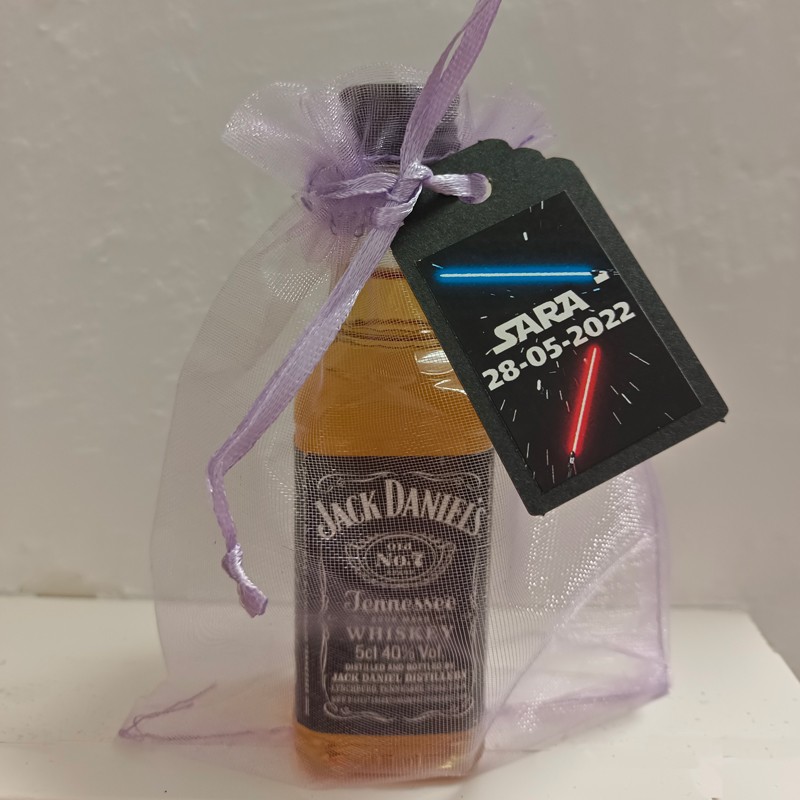 Para realizar tu pedido solo tienes que añadir el nombre y número de esta etiqueta en el apartado de comentarios del carrito de la compra una vez haber seleccionado las botellitas que quieres decorar: botellitas de licores, botellas de vino o nuestras cajas de licores.