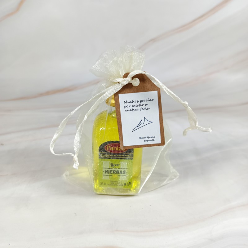 Agradece a los invitados haber asistido a tu evento con esta etiqueta. Elige la botellita de licor que prefieras y acompáñala con este diseño y todos quedarán encantados. Etiqueta sobria, perfecta para regalos de empresa.