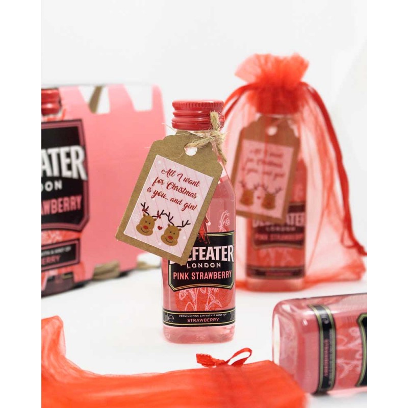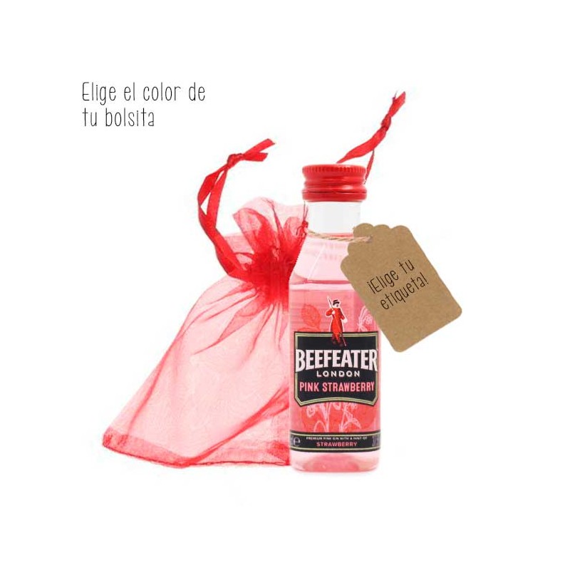 ¡Prueba el dulce y fresco sabor a fresa de la ginebra Beefeater Pink Strawberry! Te deleitará con su equilibrada fusión de cítricos, fresa y enebro. Todo esto en una bonita botella de plástico de 5cl, fácil y cómoda de transportar si la regalas en tu boda, bautizo o comunión.