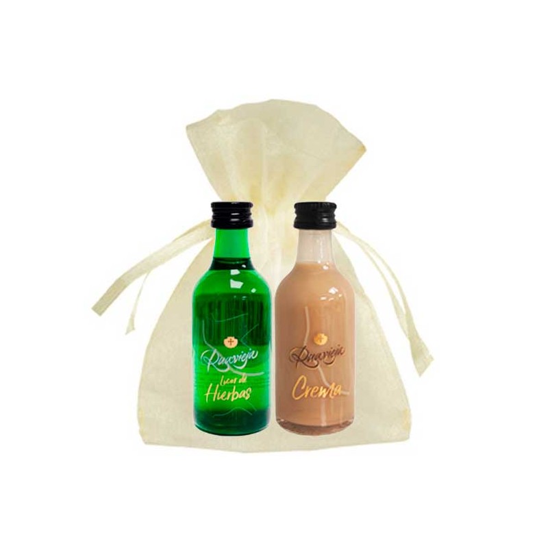 ¡Te presentamos el pack más vendido de nuestra web para dar como detalle en tus eventos! Las botellas en miniatura que gustan a todo el mundo: El licor de hierbas y licor de crema Ruavieja.