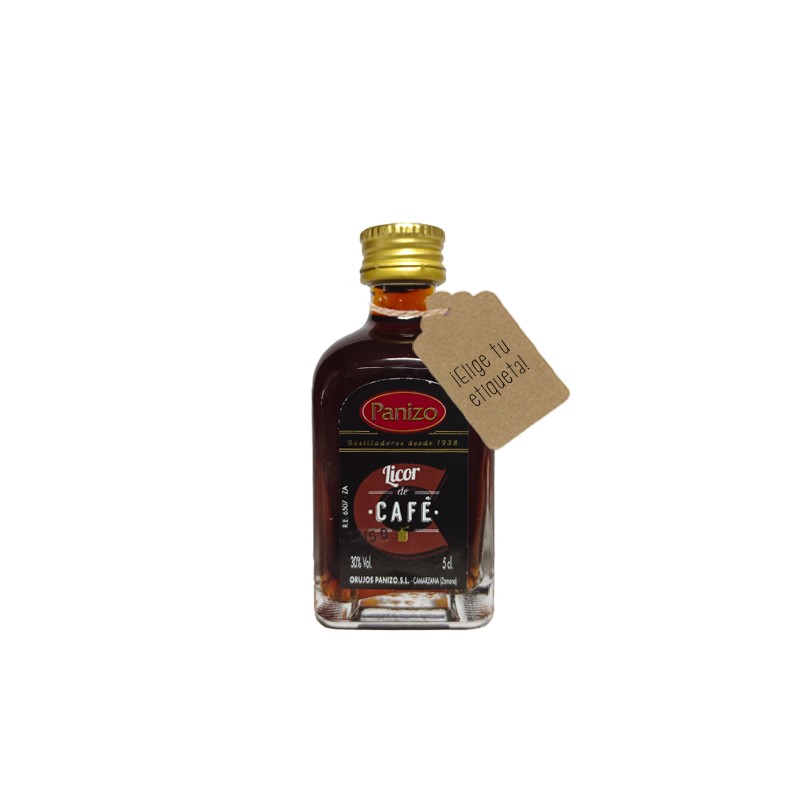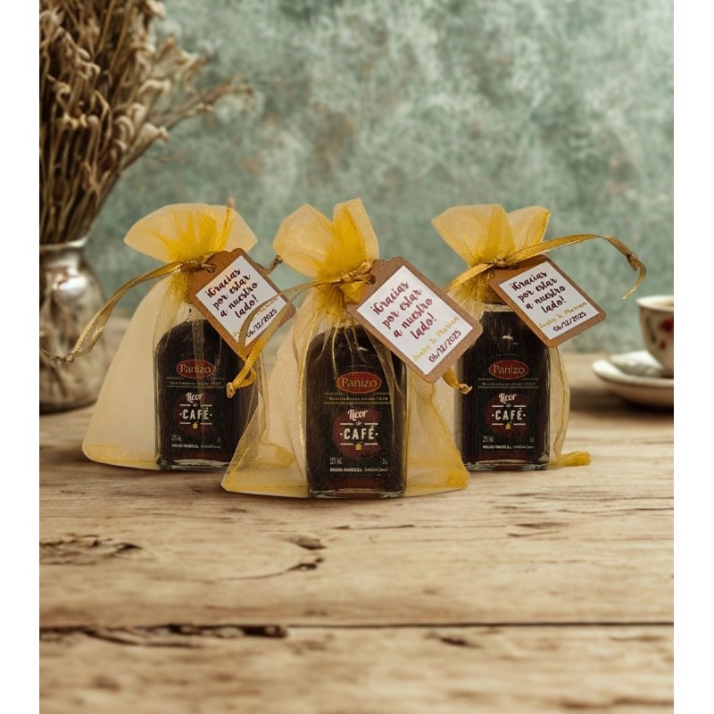 Haz que tu evento sea inolvidable con estas mini botellitas personalizadas de licor de café Panizo, un obsequio que encantará a todos tus invitados.
