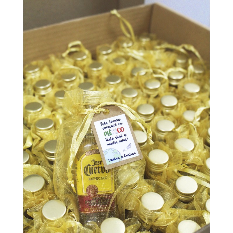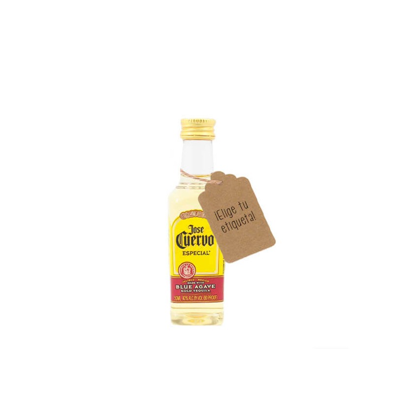 ¡La botellita en miniatura del tequila reposado más famoso del mundo! La miniatura de Tequila José Cuervo personalizada es uno de esos detalles que sorprenden, sacan una sonrisa y se disfrutan de verdad. Un clásico reconocible, en formato mini, pensado para regalar en eventos donde quieres algo diferente y con carácter: un licor dulce con un toque a vainilla.