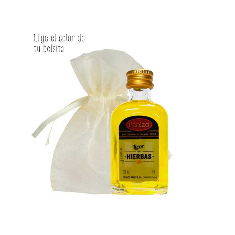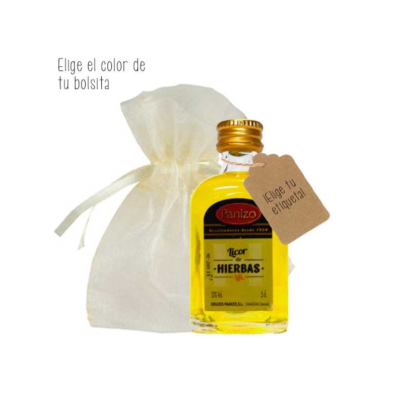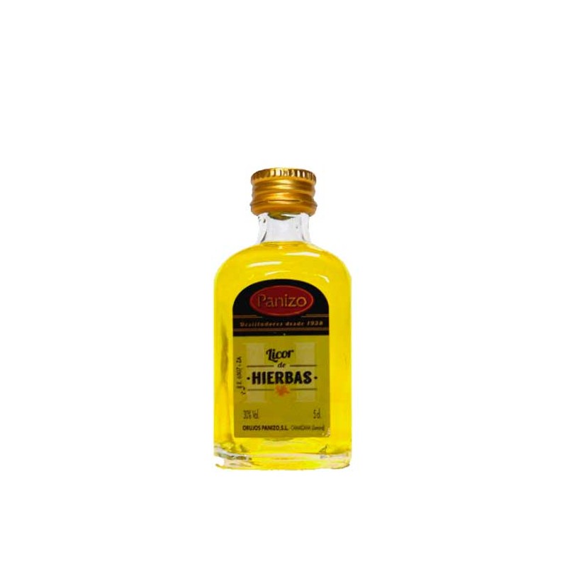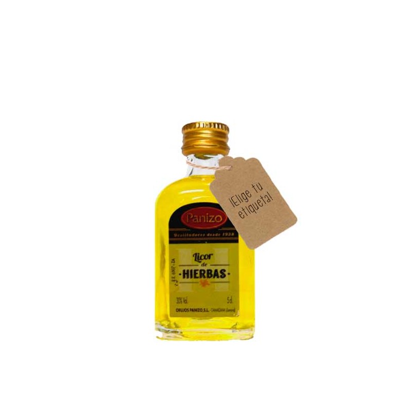 Botellita del Licor de Hierbas Panizo en miniatura (5cl), ideal para regalar en eventos. Elegante botellita en formato cristal, un detalle que dejará a tus invitados boquiabiertos.