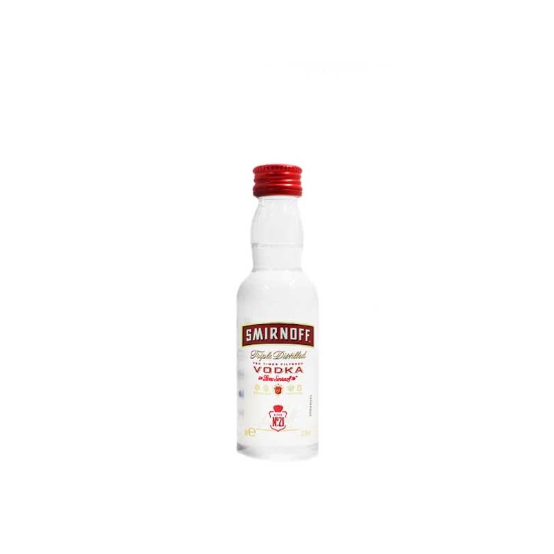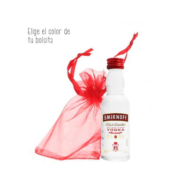 El vodka más vendido del mundo no podía faltar en Etiqueta Voltereta. Os presentamos la botellita de 5cl del vodka Smirnoff. Este vodka de triple destilación es protagonista de combinados populares como el Cosmopolitan o el Bloody Mary. ¡Arrasarás en tus celebraciones con este licor tan versátil!