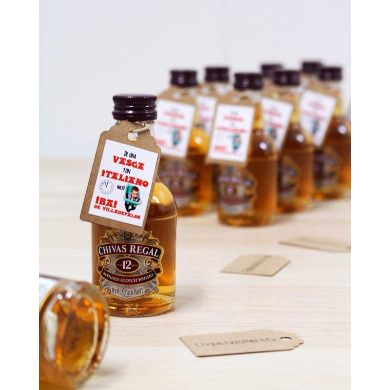 ¡Que bonita es la botellita de Whisky Chivas! Ideal para los amantes del buen whisky y para todos aquellos que valoran la calidad. Una miniatura elegante que dará estilo a tu evento, puedes regalarla como detalle con una etiqueta personalizada o bolsita de organza.